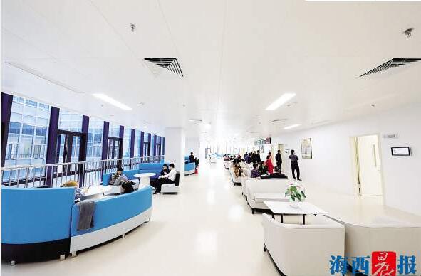 現(xiàn)代化的裝修、暖綠暖黃為主色調(diào)的環(huán)境讓人眼前一亮。科室門診和住院樓層各種指引標(biāo)識清晰明確,隨處可見溫馨提示,還有志愿導(dǎo)引人員。階梯形前臺,讓坐在輪椅上也能與醫(yī)務(wù)人員無障礙溝通。等候就診時,你可以在按摩椅上來一場放松之旅,也可以漫步VIP候診區(qū)長廊欣賞名畫。在休息區(qū),休閑吧和兒童游樂區(qū)等可以緩解診療時帶來的陌生感和緊張感。同時,五緣院區(qū)還配有超千個地面、地下停車位,方便“有車一族”到院泊車。