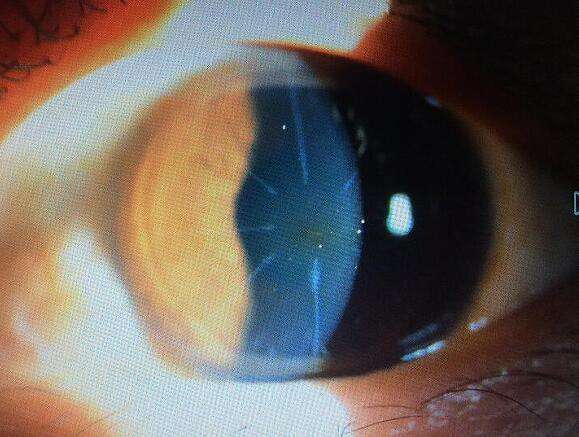 RK手術(shù)后患者眼角膜可見(jiàn)8條白色的放射狀切痕