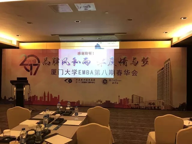 2017年1月7日,廈門大學(xué)EMBA第八期春華會在廈門瑞頤大酒店舉行,邀請華廈眼科醫(yī)院集團(tuán)董事長蘇慶燦作了主題為《品牌風(fēng)和雨,華廈情與夢》的創(chuàng)業(yè)分享。