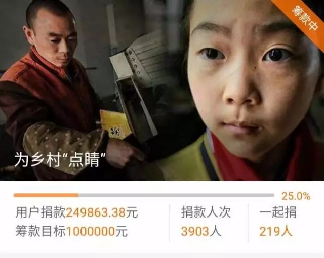 線上捐款將以騰訊大閩網(wǎng)捐贈(zèng)的20萬元善款作為起始善款,邀請(qǐng)全民參與籌集80萬“點(diǎn)睛”基金,總計(jì)100萬善款將專用于“為鄉(xiāng)村點(diǎn)睛”項(xiàng)目的配鏡、眼病患者治療及志愿者交通費(fèi)、工作簡(jiǎn)餐費(fèi)等,治病補(bǔ)助費(fèi)用將按照病患的實(shí)際情況向網(wǎng)友公布。目前已有近4000人參與,捐款總額已近25萬元人民幣。