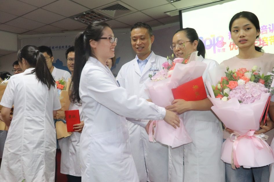 黎院長提了幾點希望:一,她希望學生們不忘初心,堅韌自信,不負醫(yī)者使命;二,她希望學生們可以不斷學習,終身學習,努力提高解決問題的能力,通過你們的使命感、求知欲和學習能力來塑造自己,同時勇于創(chuàng)新,追求卓越。通過不斷的學習變成診治能力的提高;三,她希望學生們今后要提高溝通能力,學會與患者、與同行、與領導、與同事的溝通,良好的溝通能力能夠讓醫(yī)患關系更和諧、同事關系更融洽,事業(yè)更順暢。四,她希望學生們要有奉獻精神,醫(yī)生是一個需要奉獻的職業(yè),她希望規(guī)培生們走上各自的工作崗位后,要以病人的利益為第1考慮,不計報酬,奉獻時間,奉獻才智。做一個“有理想信念、 有道德情操、 有扎實知識、 有仁愛之心”的四有好醫(yī)生。