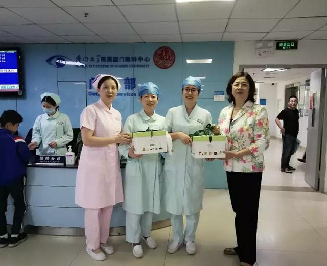 5月12日上午,廈門大學(xué)附屬廈門眼科中心工會主席陳逸恬、護理部主任許春麗及華廈眼科集團護理管理中心洪清配業(yè)務(wù)副院長一行專程前往各科室,慰問正在臨床一線辛勤工作著的護士,為大家送上節(jié)日蛋糕,送上節(jié)日的問候和祝福。