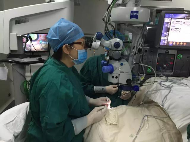 ▲廈門眼科中心總院長黎曉新為患者做手術(shù)