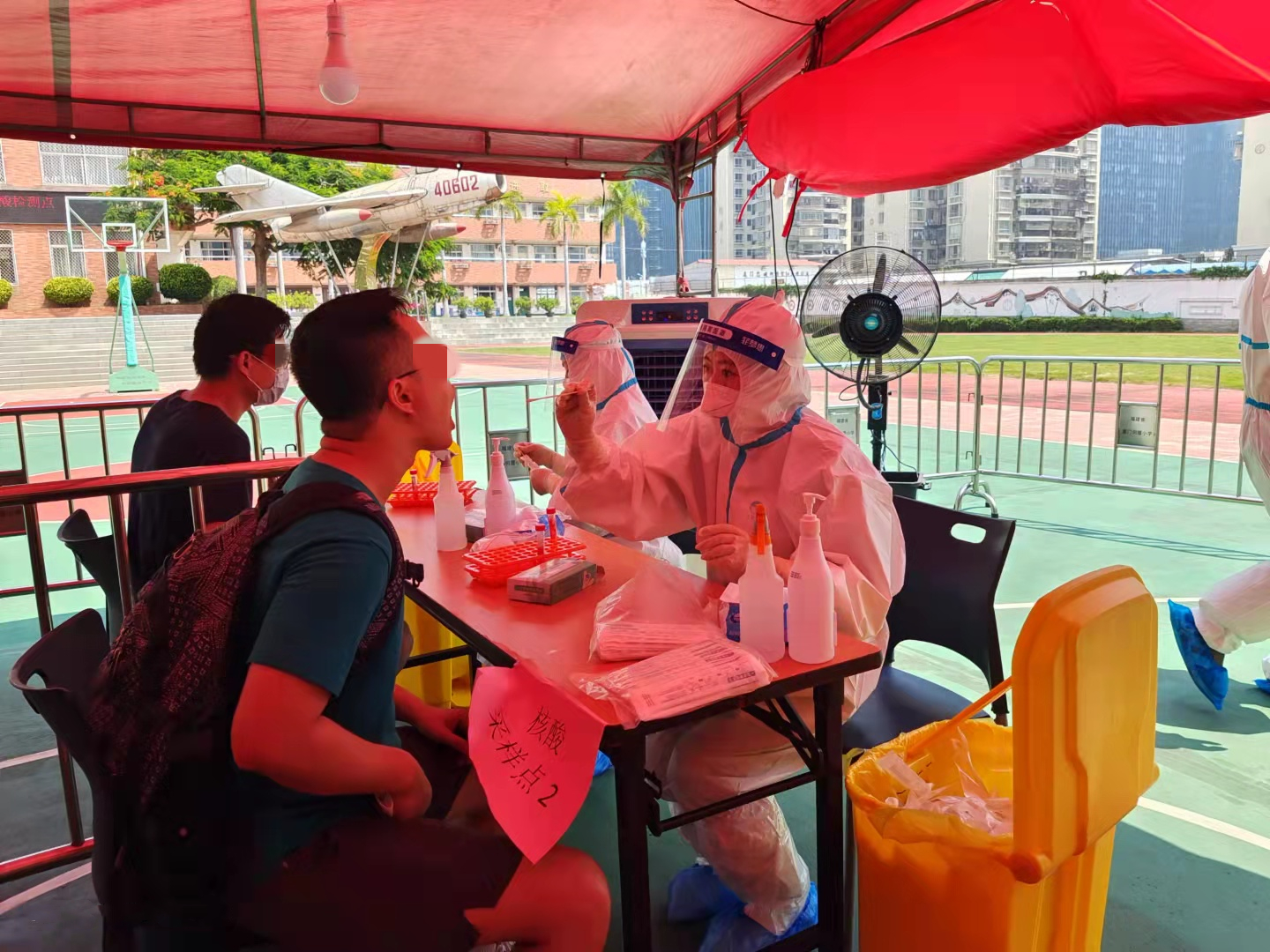 9月14日、15日,廈門眼科中心組織醫(yī)護人員,分批前往廈門何厝社區(qū)、萬壽陽臺山、祥濱公園、梅園公園等地點進行核酸采樣。