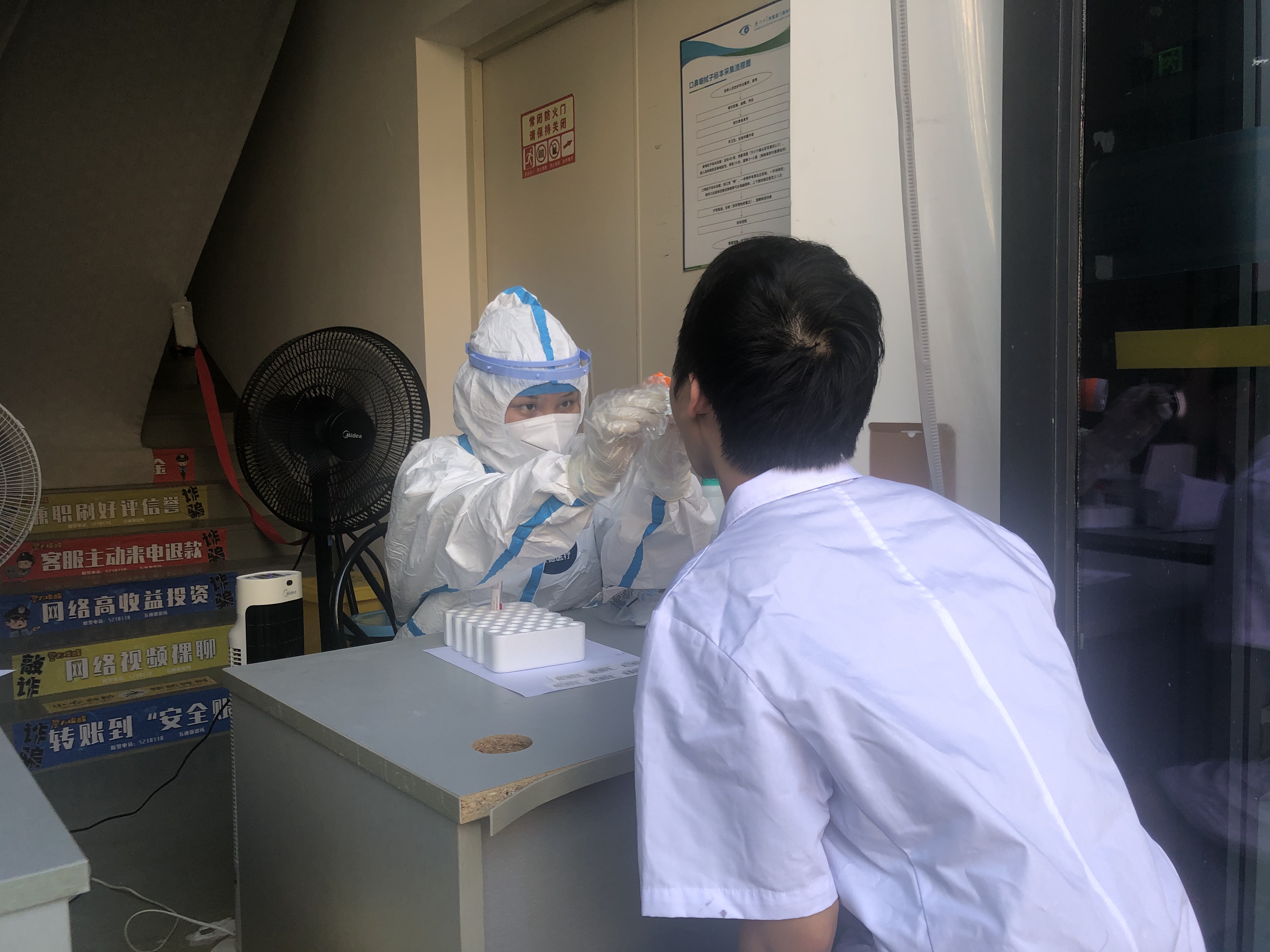 在采樣點,醫(yī)護人員穿戴著又厚又熱的防護用品,正在有條不紊地進行著緊張的采樣工作。“沖鋒在前,吃苦在前。”在高溫的炙烤下,在緊裹的防護服中,他們沒有絲毫退卻,任汗水濕透衣襟,任雙手雙腳泡得發(fā)白,耐心細致地為每一位市民做好采集工作。他們用意志錘煉初心,用行動書寫決心,全力以赴堅決守護家園,為早日打贏疫情防控殲滅戰(zhàn)作出應(yīng)有的貢獻!