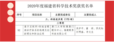 近日,福建省人民政府發(fā)布《福建省人民政府關于 2020 年度省科學技術獎勵的決定》,其中廈門眼科中心憑借“基于互聯(lián)網(wǎng)+的致盲眼病診療體系的構建及創(chuàng)新理論和防治應用”項目上榜,榮獲科技進步獎三等獎。此次獲獎也是對廈門眼科中心堅持科研創(chuàng)新和智能平臺建設的肯定。未來,廈門眼科中心也將繼續(xù)堅持相關領域關鍵技術研發(fā),深化研究成果轉化,繼續(xù)為醫(yī)生、患者群體及藥物平臺提供數(shù)據(jù)化智能服務,跟隨廈門市智慧城市建設的步伐為健康中國戰(zhàn)略提供有力支撐。