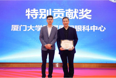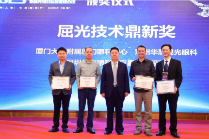 ▲ 燕振國(guó)教授為廈門眼科中心頒發(fā)“屈光技術(shù)鼎新獎(jiǎng)”